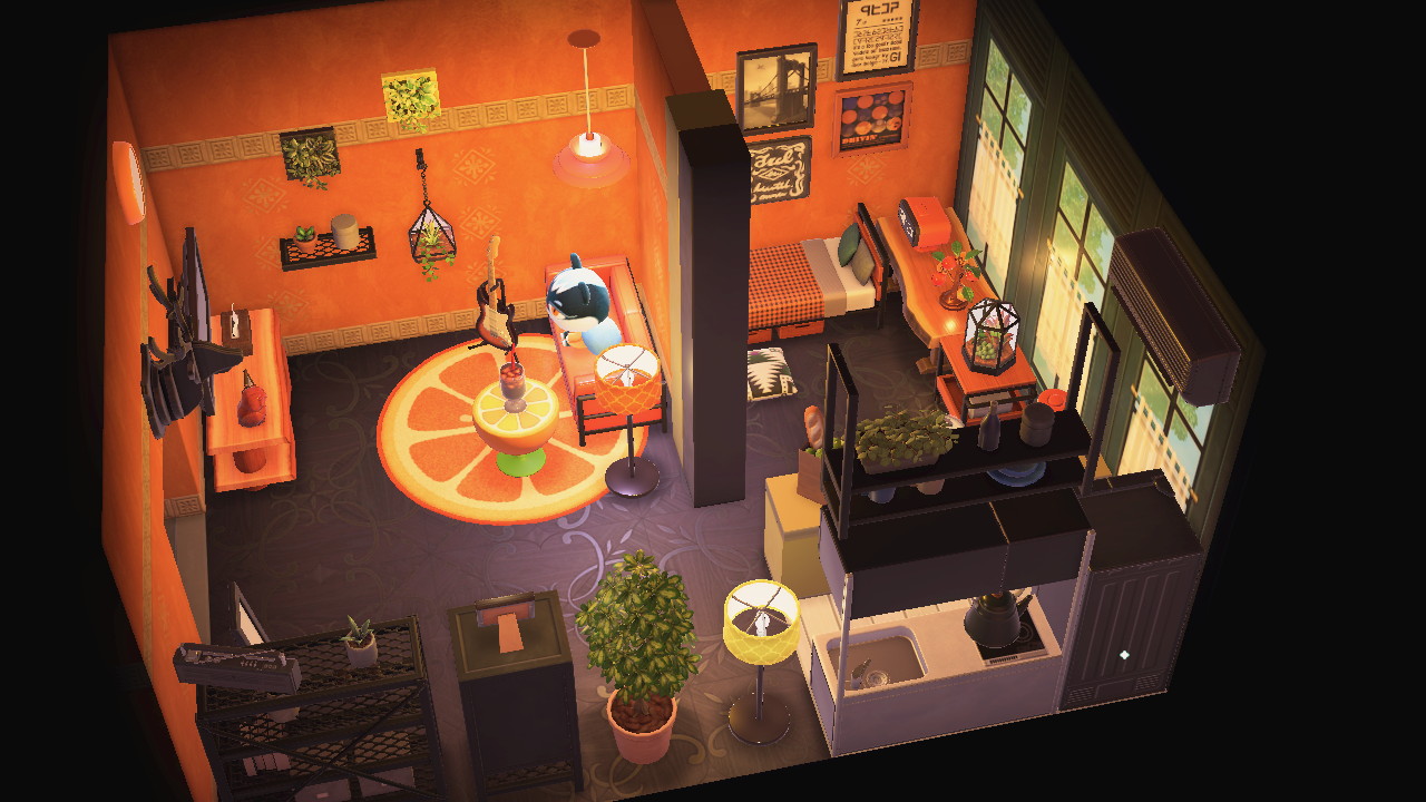 1枚目はナターシャの「オレンジな空間」、2枚目はグミの「かわいい子たち(ペットやぬいぐるみ)と暮らす」。オレンジ色は黒と組み合わせれば勝ちなのと、ナターシャの性格的にスタイリッシュなのが似合うので、80点は行ってる。